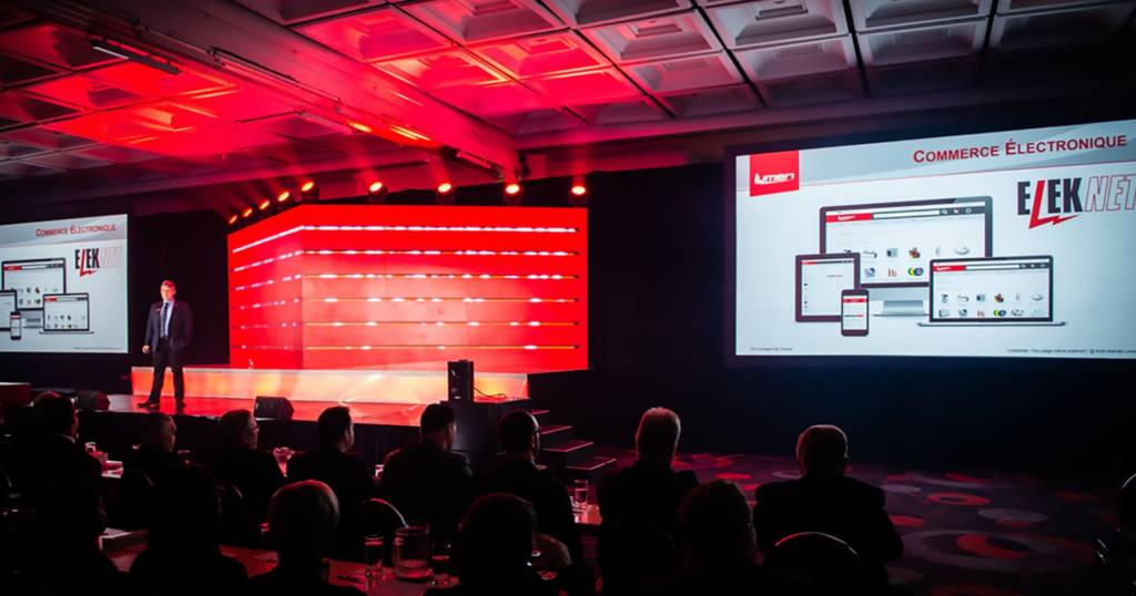 For the annual sale summit of Lumen, we designed a structure that linealry highlights the main stage, making by the same way parallel with the Lumen brand image. The integration of EPIC lights, animated with music rhythm, has enhanced the visual experience of this official meeting of Lumen.