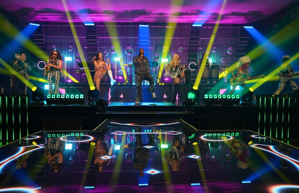 The secret to success: a fully embraced theme, a shared vision, a dash of madness… and hundreds of disco balls! Add to that a dazzling LED dance floor, custom-made content created for the occasion, musicians and dancers with infectious energy, and a passionate technical crew to bring it all together flawlessly.