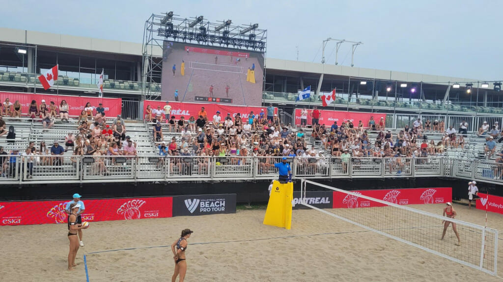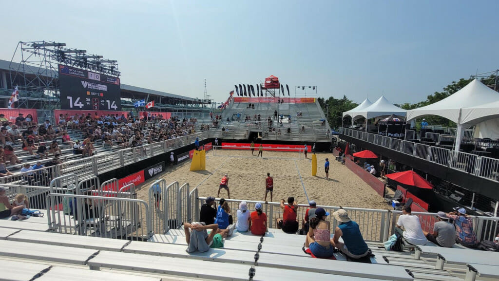 Dans le cadre de la première édition du Tournoi International de Beach Volleyball, notre équipe a conçu un stade éphémère au Parc Jean-Drapeau. Cet événement ouvert au grand public réunissait les 16 meilleures équipes féminines et masculines mondiales. Compétitionnant à l’échelle internationale et provenant des quatre coins de la planète, l’événement a réuni plus de 15,000 amateurs à Montréal!